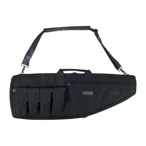 A shell of abrasion- and mildew-resistant, 1000 denier, Nytaneon nylon surrounds 3⁄8" of padding on the top and bottom of the case for snug, no-slip protection of your rifle and its expensive optics. Padding on the bottom of the case covers the zipper tracks to protect your rifle from scratches. A double-stitched, nylon carry handle is attached to the case with multi-reinforced stitching; an adjustable, padded sling offers a tactical-carry option. All cases accept rifles with mounted optics and fully unzip to be used as a shooting mat. Standard Rifle case is available in 34", 37", and 41" lengths and features four high-capacity magazine pouches (five on 41" case) with positive-close hook-and-loop patch closures, plus zippered compartments in the front for additional storage.