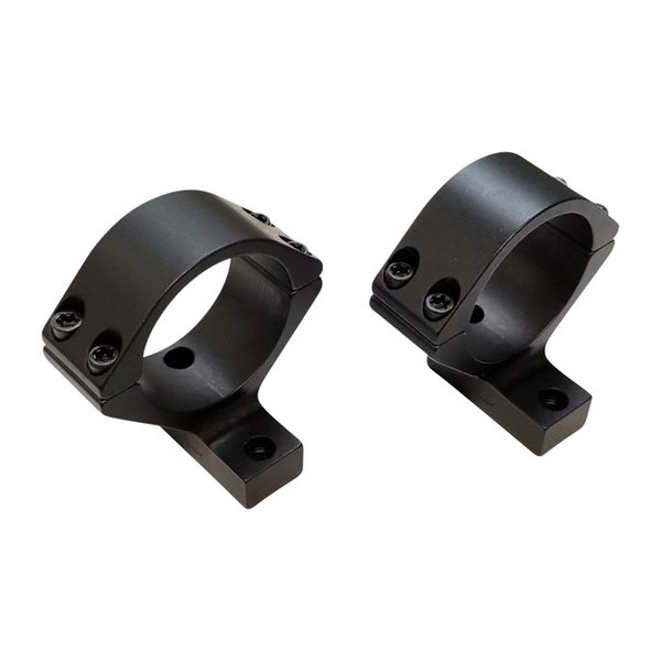 SPECS: 7000 series aluminum, black, anodized, matte finish. Accepts 1" dia. scopes, unless otherwise listed in fits column for 30mm dia. scopes. Height from bottom of ring to top of receiver: Low - .400" (10.1mm), Med - .500" (12.7mm). High - .640" (16.3mm), X‑High - .740" (18.8mm). Approx. weight 2.1 oz. (59 g). Some heights vary, see chart below. Rem. 700 also fits 721/722/725 and 40X models. Rem. Model Seven fits receivers with four screw holes. Savage AccuTrigger fits round top centerfire receivers with AccuTrigger. Win. 70 fits .860" rear hole spacing only.