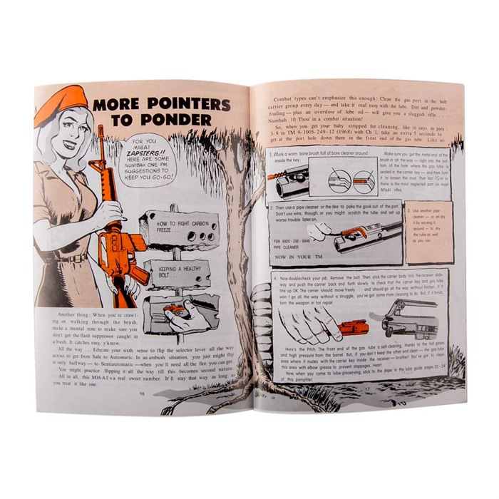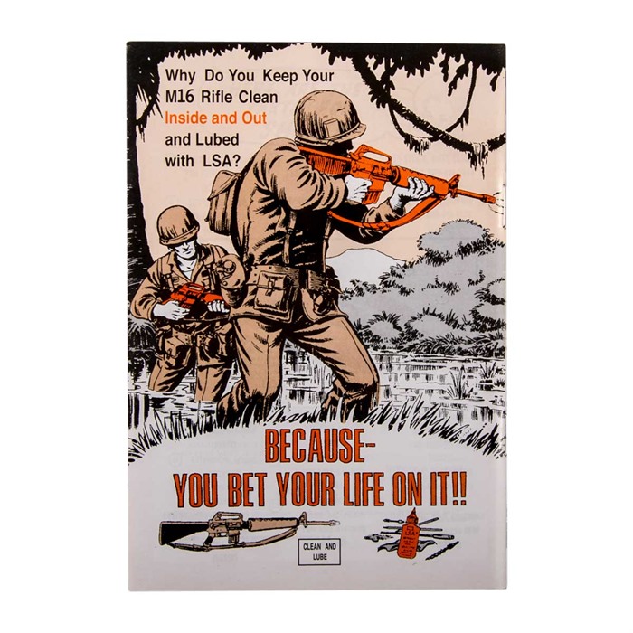 Jos olet kootnut retro AR-15:n kaikista Brownell'sin tarkoitukseen suunnitelluista reproduktiokomponenteista, niin viimeinen silaus retro-asetuksellesi on hankkia "THE M16A1 RIFLE: OPERATION AND PREVENTIVE MAINTENANCE", moderni pehmeäkantinen jäljennös klassisesta käyttöoppaasta, joka julkaistiin vuonna 1969 ja jaettiin joukoille yhdessä heidän luotettavien M16-rifleidensä kanssa.