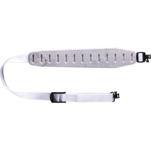 Erityisen kestävä ja hajunkestävä pata on muotoiltu hihnan verkkokudokseen, mikä mahdollistaa noin 1/2 tuuman venymisen. Tämä venyminen jakaa aseen painon hartioilla, mikä lisää huomattavasti käyttömukavuutta. Liukumattoman padin ainutlaatuinen tartuntatoiminto pitää aseen paikoillaan olkapäällä, estäen muiden markkinoilla olevien hihnojen aiheuttamat nykimiset, kääntymiset ja vetämiset.