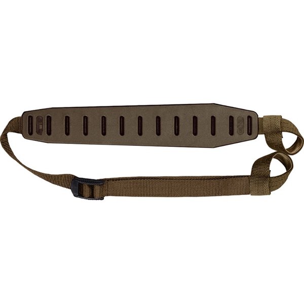 Erityisen kestävä ja hajunkestävä alusta on muotoiltu hihnan verkkokankaaseen, mikä mahdollistaa noin 1/2 tuuman venymisen. Tämä venyminen jakaa aseen painon olkapääalueelle, mikä lisää huomattavasti mukavuutta. Unique gripping action -toiminto pitää aseen paikoillaan olkapäällä, eliminoiden vetämisestä, kääntämisestä ja nykäyksistä johtuvat ongelmat, joita muilla markkinoilla olevilla hihnoilla voi esiintyä.