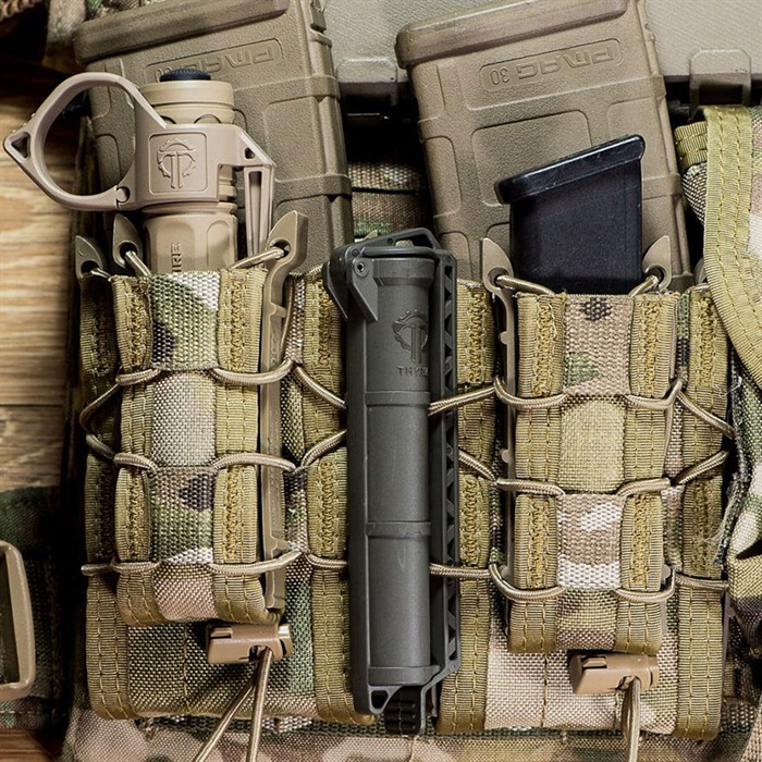 CELLVAULT BATTERY STORAGE FOR AAA AND CR123 The CellVault Battery Storage is Thyrm’s original CellVault, a space-efficient way to keep your batteries and critical gear safe, dry and accessible. It can store three CR123, four AAA, or two AA batteries, as well as small survival supplies. The CellVault Battery Storage protects batteries and other critical gear while keeping it accessible and organized. Its integrated webbing clip allows you to access the CellVault’s contents without removing it, or you can quickly detach it for more control. This is the original CellVault size. FEATURES: Mounts to PALS, MOLLE, webbing, and straps Lanyard loops at both ends, for more attachment options Slim vertical profile less than 1 MOLLE webbing column, freeing up space for other gear including first aid kits, ammo, and tools Slightly decreasing diameter that can keeps CR123 batteries at the bottom of the CellVault secure even when the CellVault is inverted. Just squeeze the sides of the tube to release CR-123s in the middle or bottom of the CellVault. Waterproof, dustproof, durable exterior keeping your essentials safe and accessible Designed and manufactured in the USA Colors: black, Olive Drab, Rescue Orange, Flat Dark Earth, Urban Grey, or clear with black hinge. Viewable contents through clear model A CellVault can store: Three CR123 batteries Four AAA batteries Two AA batteries (leaving a little extra room) Small survival gear such as matches, hooks and line, a light stick, iodine tablets, a compass, and lip balm First aid gear including hemostatic clotting agents, tweezers, and bandages Consumables* such as medication, instant coffee packets, electrolyte powder, candy Emergency money and a Flash Drive Cigar/Cigarettes/chewing tobacco *If you plan to store consumables (medication, snacks) in the CellVault, wash it thoroughly and consider using a food-safe plastic bag. Clean it with a test tube or bottle brush. The CellVault is made with food-safe thermoformed plastic. This model of CellVault is not designed to be waterproof under prolonged submersion. Subsequently, it is not designed for diving. Users should check the lip and O-ring of the CellVault for debris or wear that could prevent it from being waterproof over time.