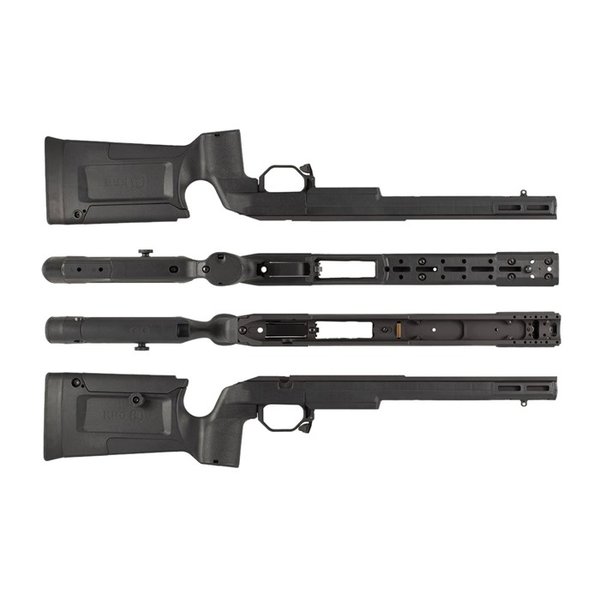 Bravo Chassis: The Bravo provides you with the essential chassis benefits combined with conventional target/varmint ergonomics all at a modest price The Bravo is one of the most comfortable stocks available but that's just the beginning. The price will make you and your wallet overjoyed. The precisely machined bedding area will put your action in its happy place nearly like it was custom bedded in there. The full length stiff aluminum backbone will not allow the forend to flex on you but does allow design modularity with loads of accessories and even other KRG chassis. The ergonomic adjustments are just what you need to fit your frame so you can pull off the difficult shots. Of course it takes AICS mags right out of the box. It's light. It's comfortable. It's modular. It's good looking. And it's practically free. You will love it. Utilizes factory CTR mags (Not included).