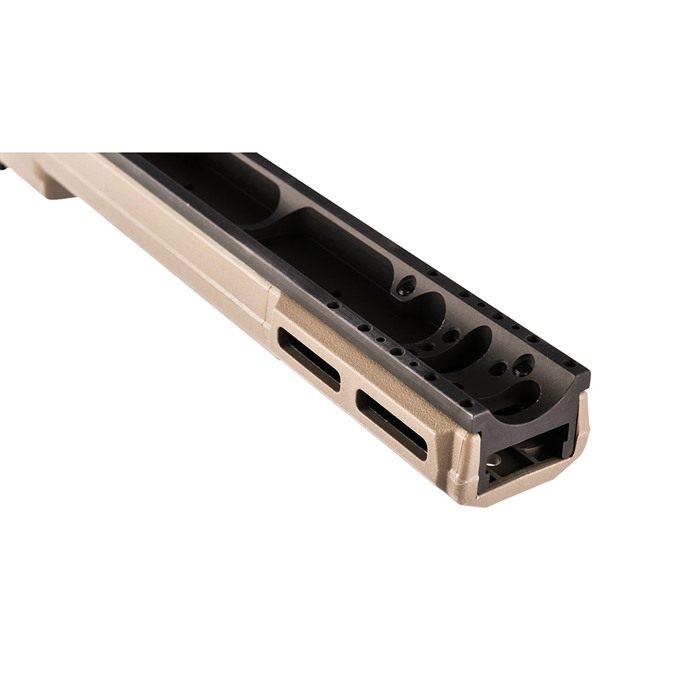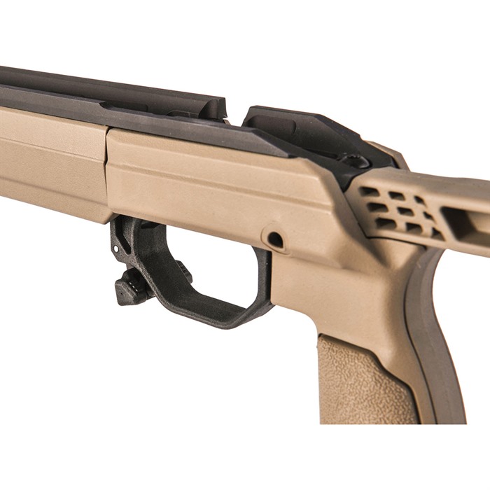 X-Ray Chassis (Generation 4) Unprecedented value...This is what the X-Ray chassis provides to you. When you pick up the X-Ray, it will feel nice and light compared to other chassis. You'll have nearly identical ergonomics to the Whiskey-3 with only a little more time involved in adjusting the different aspects like the length of pull. Furthermore, you'll have all the standard benefits of a chassis like the use of AICS magazines, a variety of mounting points for slings, barrier stops, etc., and aluminum block bedding for the action while not having to sell off a kidney to pay the price of admission. To accomplish Kinetic Research Group's design intent, they kept the features that everyone wants and needs and eliminated those that weren't necessary. Then they utilized efficient manufacturing processes to keep production costs down and in turn keep the price to the shooter down. The end result is a hybrid aluminum and polymer chassis that we think you'll love. KRG is proud to present the X-Ray chassis, the result of years of careful design, thought, refinement, and hard work. The change is a new one piece backend, which comes standard with tool-less buttpad height and cant adjustment, as well as a ambidextrous cheekpiece thumbscrew. The Tikka inlet accepts T3, T3x, and CTR versions, however slight mods may be required on the trigger-guard for the T3 TAC A1 to function properly. Tikka rifles accept AICS pattern mags with the exception of the Magpul AICS polymer mags.