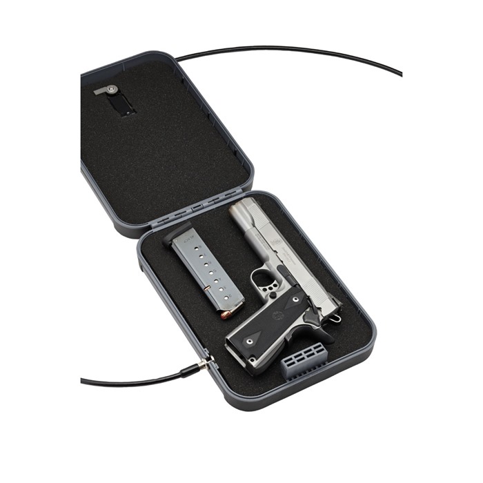 The TrekLite Lock Box Combination series provides lightweight, low-profile storage for handguns and other valuables at home or when traveling. Quickly retrieve your handgun with the convenient 4-Digit TSA lock customizable with over 10,000 user programmable codes. Constructed of advanced, impact-resistant polycarbonate for exceptional toughness. The TrekLite Lock Box weighs a mere 1.6 lbs. providing discreet security for conceal carry permit holders. Easily fits in a suitcase, drawer, or under a car seat Fits up to full-sized 1911 handguns Quality foam interior protects valuables Meets TSA airline firearm guidelines 1500 lb. security able included Durable rubber oversold provides exterior protection The Treklite Lock Box goes where you want at home or on the road and opens with the speed and simplicity you need.