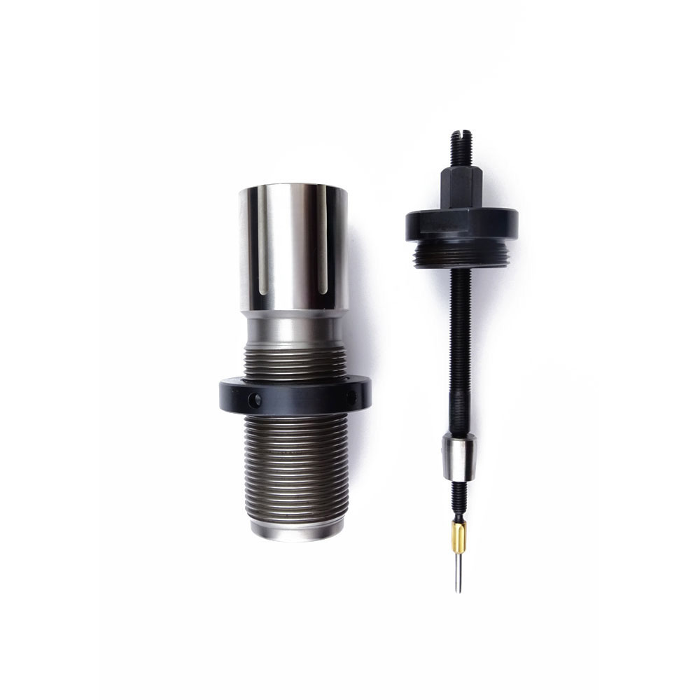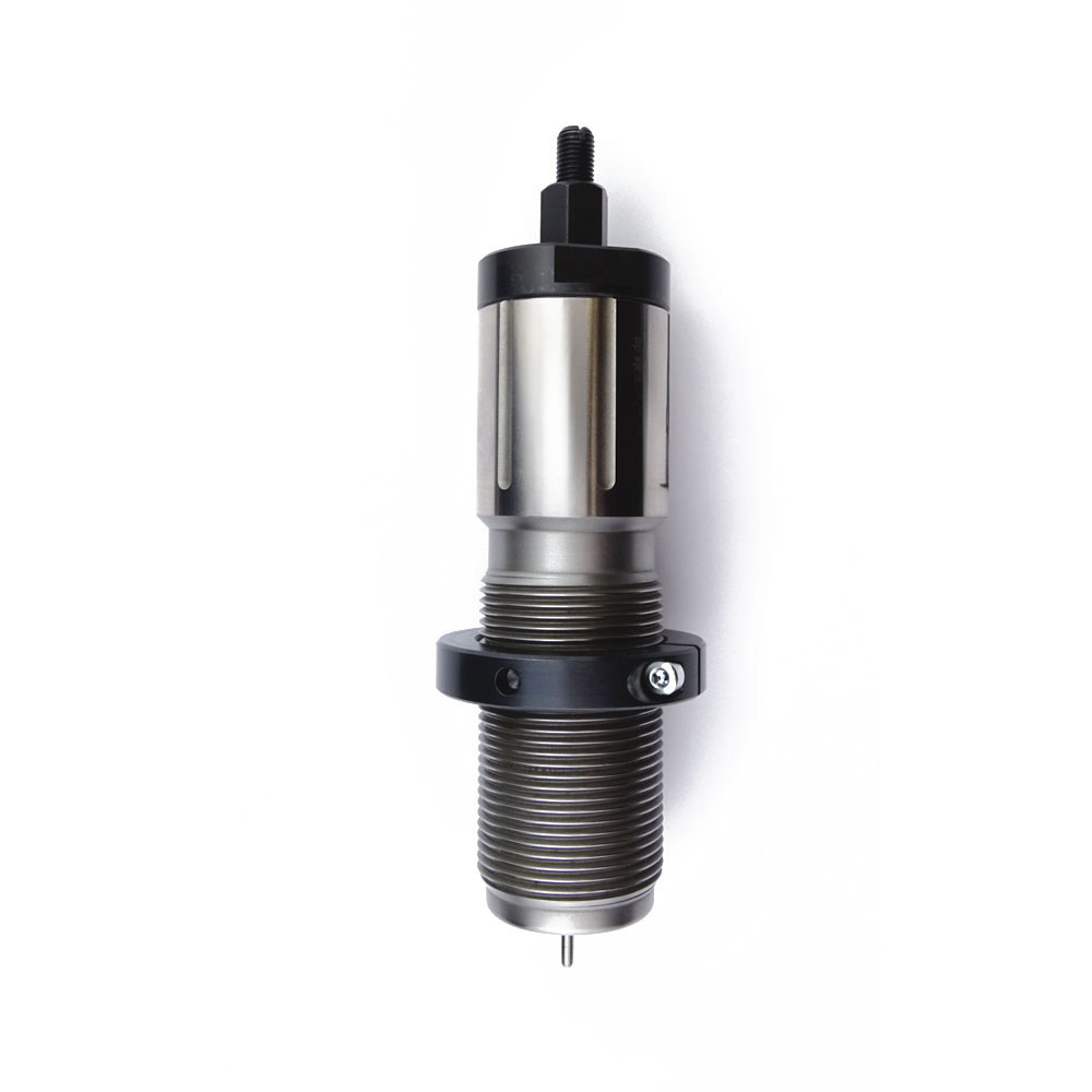 Calibration takes place when the cartridge case is pushed into the die. The neck of the case is calibrated from the inside when it is moved out of the die. This will form the cartridge case and achieves a correct neck tension.