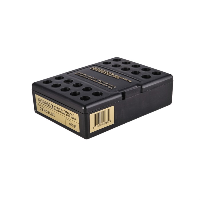 Type S Elite -setti koostuu Type S Bushing Full Die:stä, Type S Bushing Neck Die:stä ja vertaansa vailla olevasta Redding Competition Seating Die:stä. Kaikki Type-S die:t käyttävät vaihdettavaa bushingia, joka hallitsee kaulan halkaisijaa ja jännitystä tarkkuudella 0.001”.