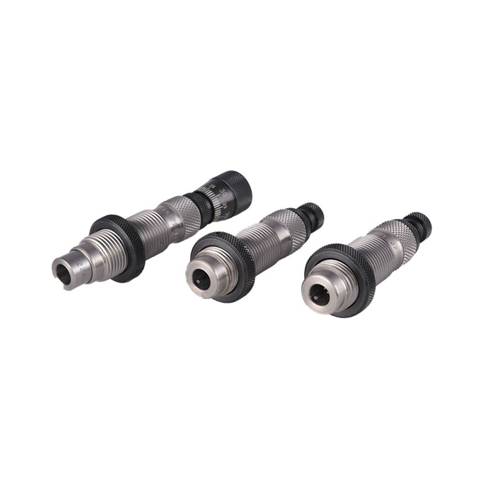 Type S Elite -setti koostuu Type S Bushing Full Die:stä, Type S Bushing Neck Die:stä ja vertaansa vailla olevasta Redding Competition Seating Die:stä. Kaikki Type-S -dies käyttävät vaihdettavaa bushingia, joka hallitsee kaulan halkaisijaa ja jännitystä 0.001” tarkkuudella. Bushingit ovat saatavilla kovametallista, mutta myös TIN (Titanium Nitride) pinnoitteella, joka lisää voitelua. Tämä antaa käsityöläiselle täydellisen hallinnan ja tarkkuuden, kun säädetään oikeaa kaulajännitystä ilman pelkoa messingin ylikuormituksesta. Nämä bushingit ovat myös vapaasti liikkuvia, mikä auttaa itse keskittämään ne patruunan kaulalle, mikä parantaa koon tarkkuutta.