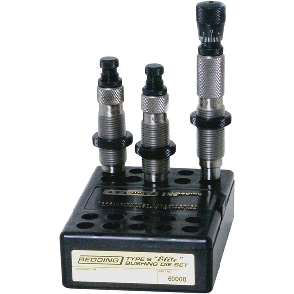 Type S Elite setti koostuu Type S Bushing Full Die:stä, Type S Bushing Neck Die:stä ja vertaansa vailla olevasta Redding Competition Seating Die:stä. Kaikki Type-S die:t käyttävät vaihdettavaa bushingia hallitakseen kaulan halkaisijaa ja jännitettä 0.001” tarkkuudella. Bushingeja on saatavilla kovametallista, mutta myös TIN (Titanium Nitride) pinnoitteella, joka tarjoaa vieläkin paremman voitelun. Tämä antaa käsityöläiselle täydellisen hallinnan ja tarkkuuden kaulan jännitteen asettamisessa ilman pelkoa messingin ylikuormituksesta kaulan alueella.