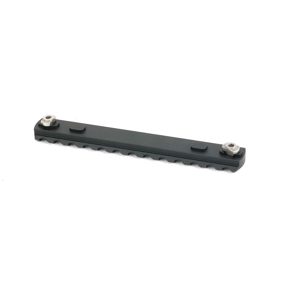 Taktiikka M-LOK Picatinny Rail on valmistettu 6061-T6-alumiinista ja se on käsitelty kovaan anodisointiin mustana, mikä takaa kestävän pinnan.