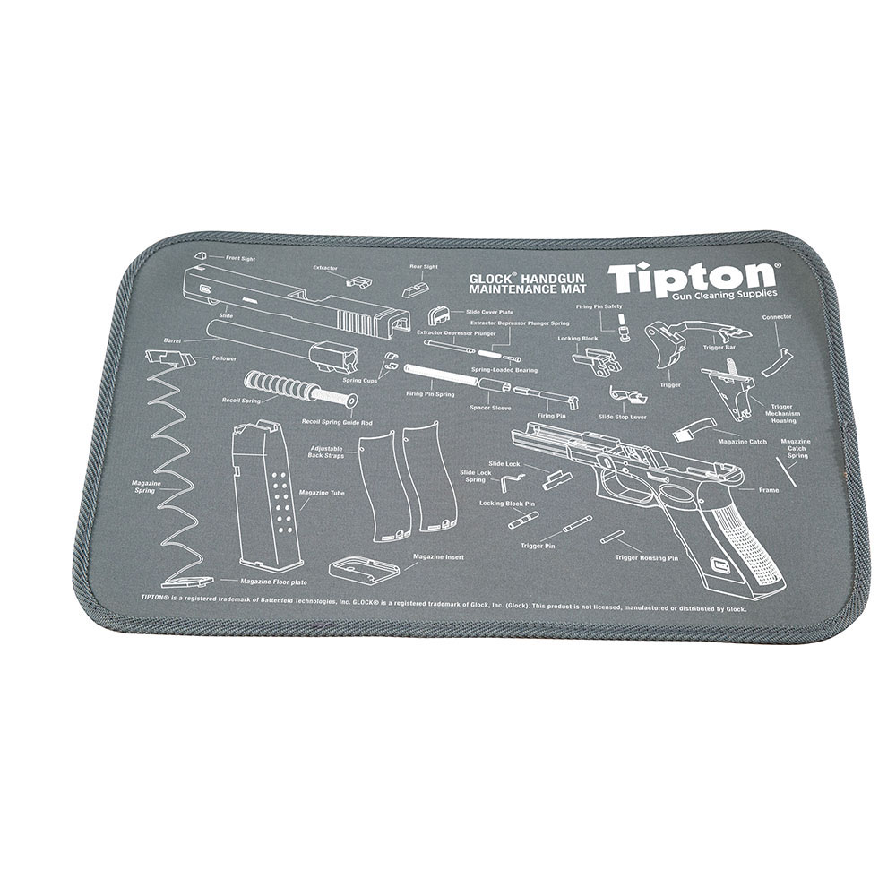 Tipton Maintenance Mats - Glock Maintenance Mat on ihanteellinen materiaali työpöydällesi aseiden puhdistamisen tai purkamisen aikana. Sen pehmustettu neopreenirakenne suojaa aseiden pintakäsittelyjä ja auttaa pitämään pienet osat järjestyksessä.