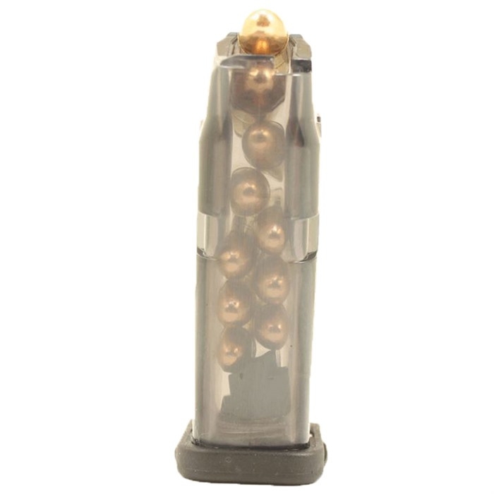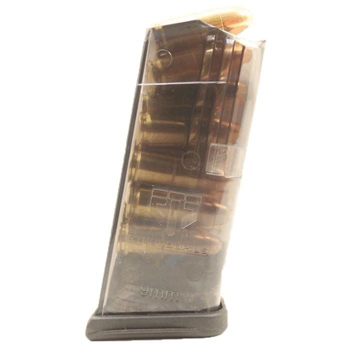Reliability of our ETS mags: The ETS transparent Glock mags take visibility and safety to new level. Users are able to quickly determine the round count and ammo type from any viewing angle. These mags have been through rigorous testing including several 1000s of rounds ran through them without failure, using all generations and size of Glock pistols. Several different brands of ammo was used in testing, including hollow points. We cut no corners in testing to insure our mags deliver the same reliability that is expected out of OEM Glock mags. The ETS GLock mag: Fully compatible with aftermarket base plates. Reliably hold the slide back when empty. Drop Free Easy disassembly for cleaning Specially designed base plate has a grip rib to aid in extraction Superiority of our Polymer: To insure our mags can handle any abuse that the user would put it through we use our proven Advanced Transparent Polymer. This is the same groundbreaking polymer we developed for our AR15 magazine. We have tested our Polymer in the following conditions: Repeated drops from 8ft fully loaded without breaking or cracking. Extreme thermal conditions ranging from -60 to 180 deg F for extended periods. Extremely elevated UV exposure for several months to insure it will not become brittle. Unmatched chemical resistance including Deet, Fuels, Cleaners… Creep resistant, your mag will not creep/spread when stored fully loaded.