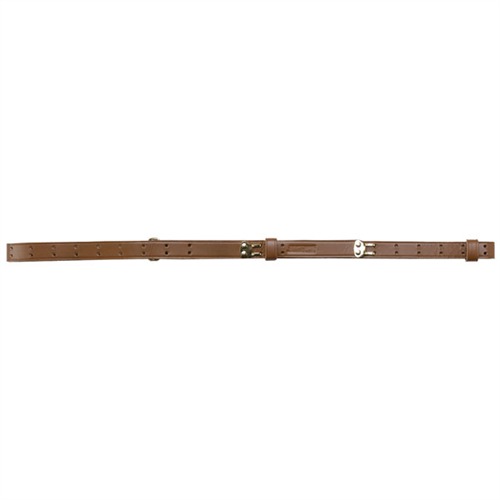 Belt-grade leather for great looking, great feeling slings. Top-quality leather is tough and supple; oil finished with brass-plated hardware and leather keepers. Traditional military style with double row of holes, 2-piece construction. Brass plated ring and hooks.
