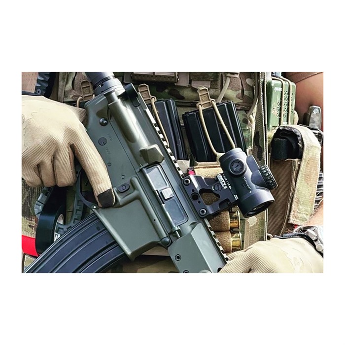- FAST™ MRO Mount sisältää integroidun standardikorkeuden tuulen säätömahdollisuuden taka-akkusiteen, joka pitää aseet siisteinä ilman suorituskyvyn heikentämistä.