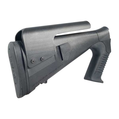 URBINO TACTICAL SHOTGUN BUTTSTOCKS, URBINO BUTTSTOCK, BENELLI M1/M2 -tuote on suunniteltu parantamaan käyttömukavuutta ja hallittavuutta, kun käytät kehon suojavarusteita. Pistol grip -kanta on valmistettu kestävästä, lasikuituvahvistetusta nylonpolymeeristä, ja sen lyhyt 12½" (31,7 cm) vetopituus helpottaa aseiden olkapäälle nostamista ja liikuttamista.