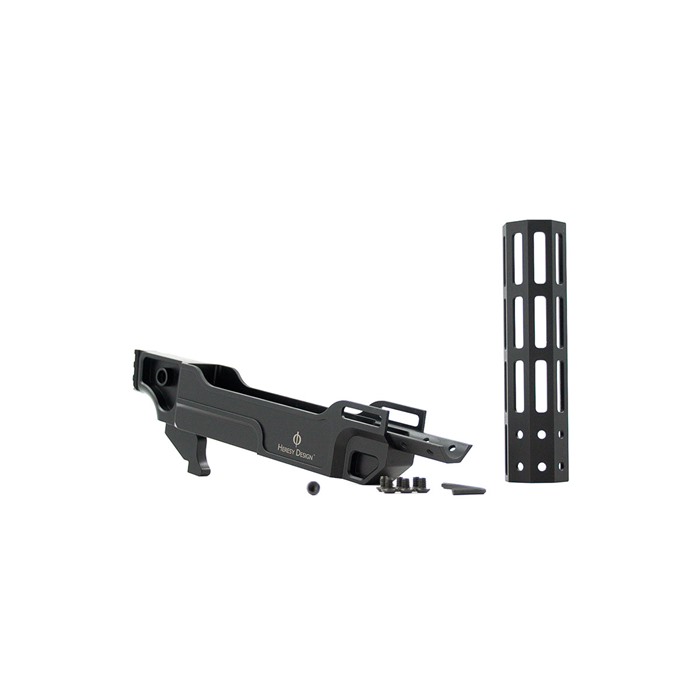 Vendetta™-kotelosysteemi on valmistettu korkealaatuisesta alumiinista, joka ei ainoastaan paranna aseesi ulkonäköä, vaan tarjoaa myös vertaansa vailla olevaa kestävyyttä ja suorituskykyä. M-LOK®-rauta tarjoaa monipuolisen alustan valojen ja muiden lisävarusteiden kiinnittämiseen, jolloin voit räätälöidä varusteesi omien ampumistarpeidesi mukaan.