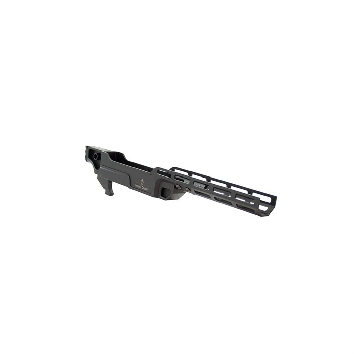 Discover the pinnacle of firearm enhancement with the Vendetta™ chassis system. Crafted from high-quality aluminum, this chassis not only enhances the aesthetics of your firearm but also delivers unparalleled durability and performance. The M-LOK® rail provides a versatile platform for mounting lights and other accessories, allowing you to customize your setup to suit your shooting needs. Ships with Chassis, Rail, Grip Insert, Grip Insert Screw, 6 Rail Screws, and 2 Allen Keys. FEATURES: Material: 6061 T6 Finish: MilSpec Type II Anodized Lightweight Design with Slim Profile (15 oz.) Free Float Rail with Centrally Positioned MLOK® Slots Machined-in QD Sockets Compatible with All Standard AR-style Grips 5° angled back rail for Folding Stocks or Braces Compatible with Fixed Barrel Ruger® 10/22® Pattern Barreled Actions Manufactured in the USA Limited Lifetime Warranty