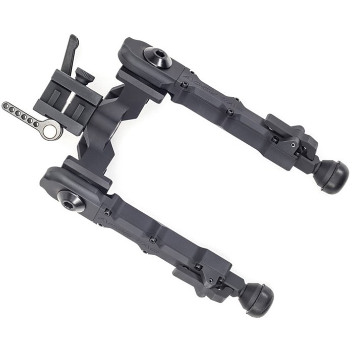 ACCU-TAC WB-4 BIPODS The WB-4 Wide Body bipod was designed to provide desired height and extra stability. This bipod style is ideal for long-range, extreme long-range, bench-rest, and for the airsoft platform. The wide, lowered center allows the rifle to sit between the legs which supports accuracy and helps reduce movement from recoil. This is only a suggested use, this model is not exclusive for these applications. To engage or adjust leg position, simply pull the spring-loaded leg downward to move each leg independently. Leg position can be deployed to 90° or 45°, locking securely into 4 positions. Please keep in mind the cant adjustment lever can be repositioned, DO NOT use a tool to tighten the canting tension. All are black with anodized finish. Choose: Quick Detach for Picatinny rail mount that is simple, quick, and very secure, it attaches to a 1913 Picatinny rail and mounts in seconds without the need to use extra tools for tightening. Quick Detach for Arca Swiss or Arca Style rail that mounts in seconds without the need to use extra tools for tightening. Model WBB-0400 Quick Detach Picatinny Specs: Min. Height (Legs at 45°) 4.5"" / 114.3 mm Min. Height (Legs at 90°) 6.0"" / 152.4 mm Max. Height (Legs at 90°) 7.5” / 190.5 mm Min. Stance (Legs at 45°) 10.0” / 254 mm Max. Stance (Legs at 90°) 14.0"" / 355.6 mm Closed Position Width 5.0"" / 127 mm Closed Position Length 7.5” / 190 mm Weight 22.08 oz Model WBASQD-0400 Arca Speck Quick Detach Specs: Min. Height (Legs at 45°) 4.75"" / 120.65 mm Min. Height (Legs at 90°) 6.25"" / 158.75 mm Max. Height (Legs at 90°) 7.75” / 196.85 mm Min. Stance (Legs at 45°) 10.0” / 254 mm Max. Stance (Legs at 90°) 14.0"" / 355.6 mm Closed Position Width 5.0"" / 127 mm Closed Position Length 7.5” / 190 mm Weight 22.08 oz