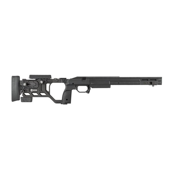 The KRG Whiskey-3 Chassis (W3C) is one of the premier chassis available for your bolt action precision rifle. The W3C combines precise aluminum bedding with tool-less adjustments, durability, and excellent ergonomics. Right out of the box it allows the use of AICS style magazines (not included) in your rifle without any special bottom metal. Numerous types of accessories can be added to the many attachment points, including handstops, sling mounts, rails, bipods, monopods, and more. KRG’s modular grip panels allow the shooter to tailor the fit of the stock to his/her hand which, combined with the other adjustments, yield a stock set up exactly as it needs to be for that particular shooter. The latest Generation (6) features a new length-of-pull locking mechanism that is a bit more streamlined than previous generations and allows for faster adjustments. Remington 700 long action chassis takes AICS pattern 3.850" length magazines.