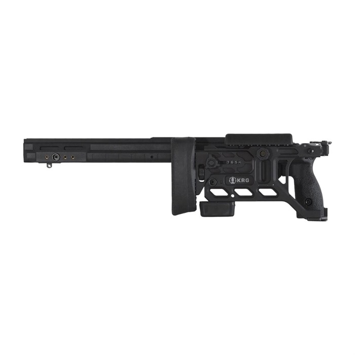 The KRG Whiskey-3 Chassis (W3C) is one of the premier chassis available for your bolt action precision rifle. The W3C combines precise aluminum bedding with tool-less adjustments, durability, and excellent ergonomics. Right out of the box it allows the use of AICS style magazines (not included) in your rifle without any special bottom metal. Numerous types of accessories can be added to the many attachment points, including handstops, sling mounts, rails, bipods, monopods, and more. KRG’s modular grip panels allow the shooter to tailor the fit of the stock to his/her hand which, combined with the other adjustments, yield a stock set up exactly as it needs to be for that particular shooter. The latest Generation (6) features a new length-of-pull locking mechanism that is a bit more streamlined than previous generations and allows for faster adjustments. Remington 700 long action chassis takes AICS pattern 3.850" length magazines.