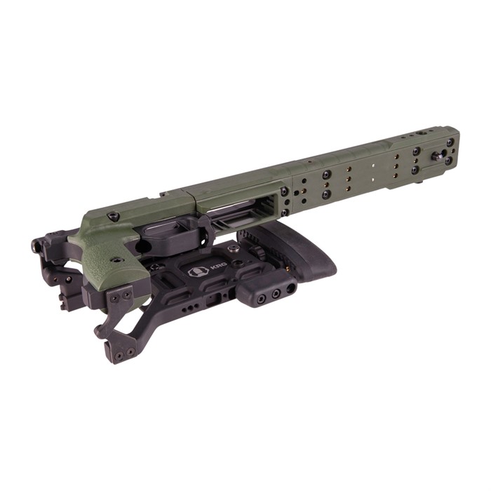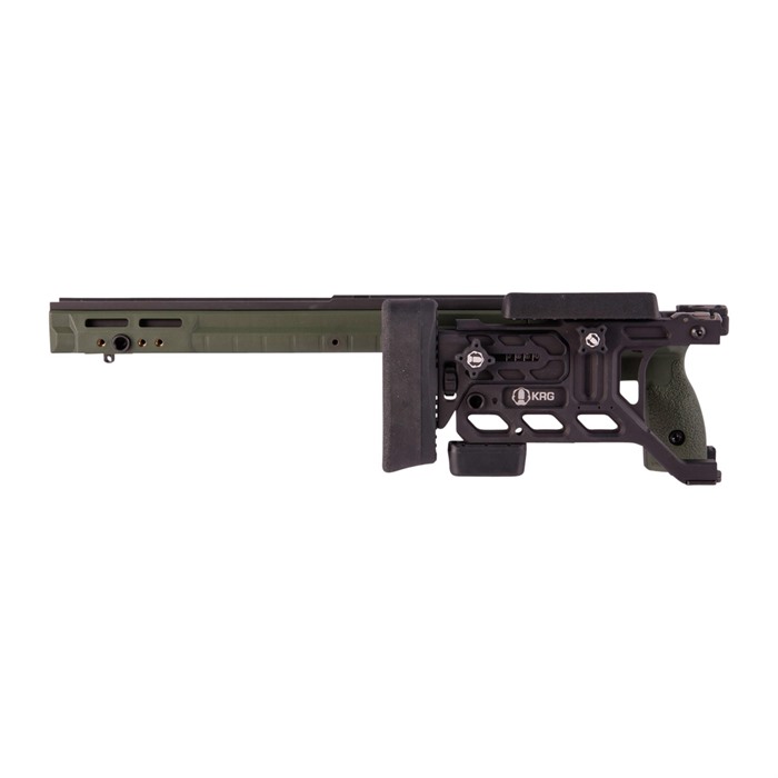 The KRG Whiskey-3 Chassis (W3C) is one of the premier chassis available for your bolt action precision rifle. The W3C combines precise aluminum bedding with tool-less adjustments, durability, and excellent ergonomics. Right out of the box it allows the use of AICS style magazines (not included) in your rifle without any special bottom metal. Numerous types of accessories can be added to the many attachment points, including handstops, sling mounts, rails, bipods, monopods, and more. KRG’s modular grip panels allow the shooter to tailor the fit of the stock to his/her hand which, combined with the other adjustments, yield a stock set up exactly as it needs to be for that particular shooter. The latest Generation (6) features a new length-of-pull locking mechanism that is a bit more streamlined than previous generations and allows for faster adjustments. Remington 700 long action chassis takes AICS pattern 3.850" length magazines.