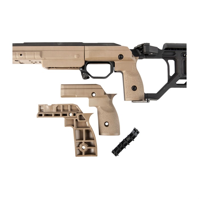 The KRG Whiskey-3 Chassis (W3C) is one of the premier chassis available for your bolt action precision rifle. The W3C combines precise aluminum bedding with tool-less adjustments, durability, and excellent ergonomics. Right out of the box it allows the use of AICS style magazines (not included) in your rifle without any special bottom metal. Numerous types of accessories can be added to the many attachment points, including handstops, sling mounts, rails, bipods, monopods, and more. KRG’s modular grip panels allow the shooter to tailor the fit of the stock to his/her hand which, combined with the other adjustments, yield a stock set up exactly as it needs to be for that particular shooter. The latest Generation (6) features a new length-of-pull locking mechanism that is a bit more streamlined than previous generations and allows for faster adjustments. The Tikka inlet accepts T3, T3x, and CTR versions (basically all short action caliber T3 variants). Tikka rifles accept AICS pattern mags with the exception of the Magpul AICS polymer mags.
