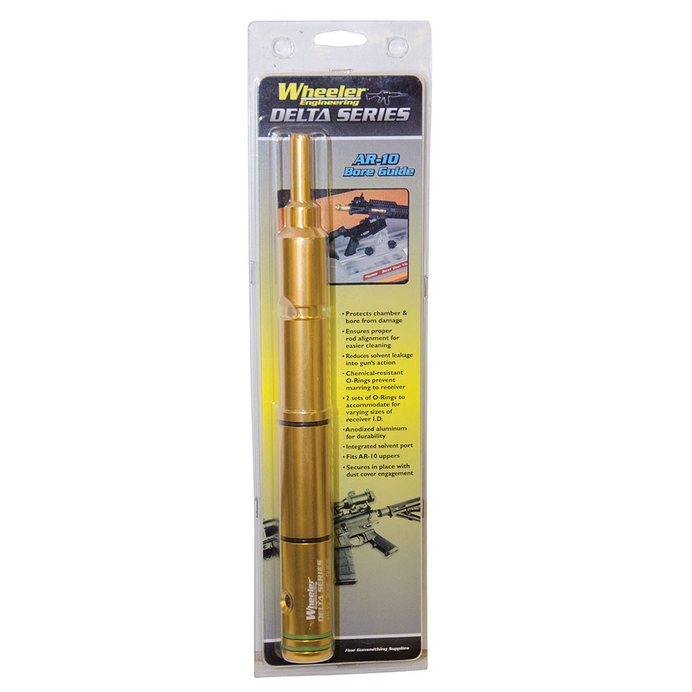 Wheeler Delta Series AR-10 Bore Guide on suunniteltu suojaamaan kiväärisi borea ja toimintaa puhdistuksen aikana. Tämä tarkasti CNC-koneistettu alumiininen bore guide auttaa kohdistamaan puhdistusvarren oikein ja vähentämään liuottimen ylivuotoa.