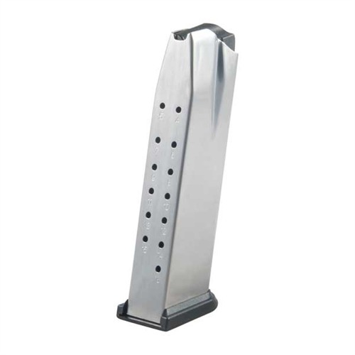 SPECS: Body - Highly polished stainless steel. Base Pad & Follower - Polymer, black. Capacity: .40 S&W – 16-rounds.