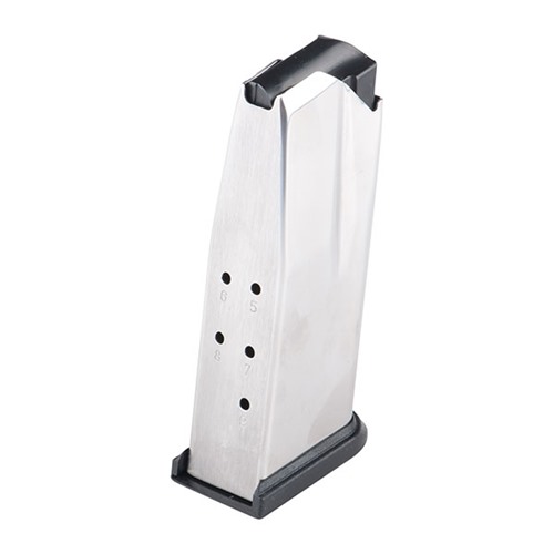 SPECS: Body - Highly polished stainless steel. Base Pad & Follower - Polymer, black. Capacity: .45 ACP - 10- and 9-round capacities available.