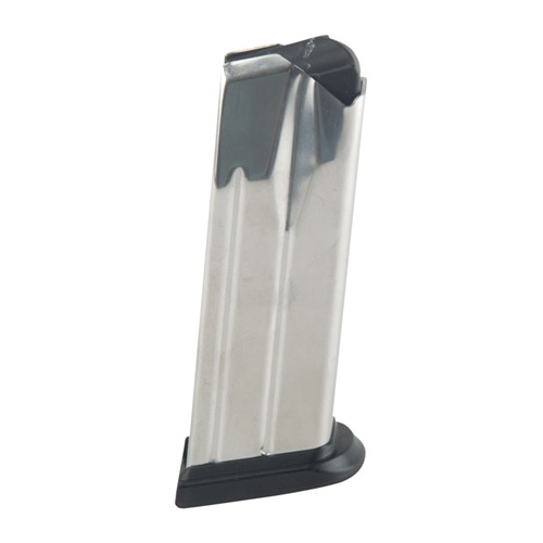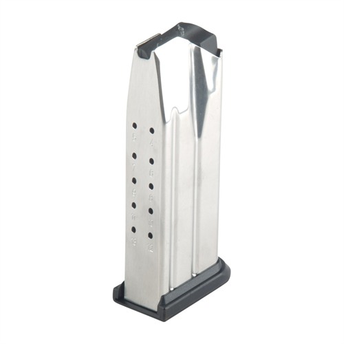 SPECS: Body - Highly polished stainless steel. Base Pad & Follower - Polymer, black. Capacity: 9mm - 13-rounds.