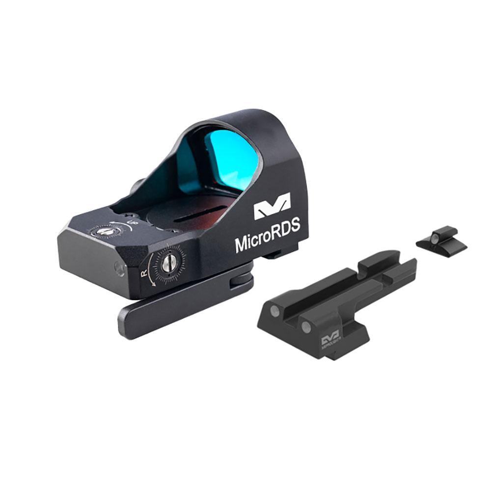 MEPRO microRDS tuo täysikokoisen punapisteoptikan nopean kohteen hankinnan kompaktin pistoolin tähtäimeen. Tämä innovatiivinen tuote sisältää patentoituja quick-detach (QD) -adapterisarjan, joka kiinnitetään helposti pistoolin olemassa olevaan takatähtäimen loviin; ei porausta, kierteitystä tai tarpeita asekorjaajalle.
